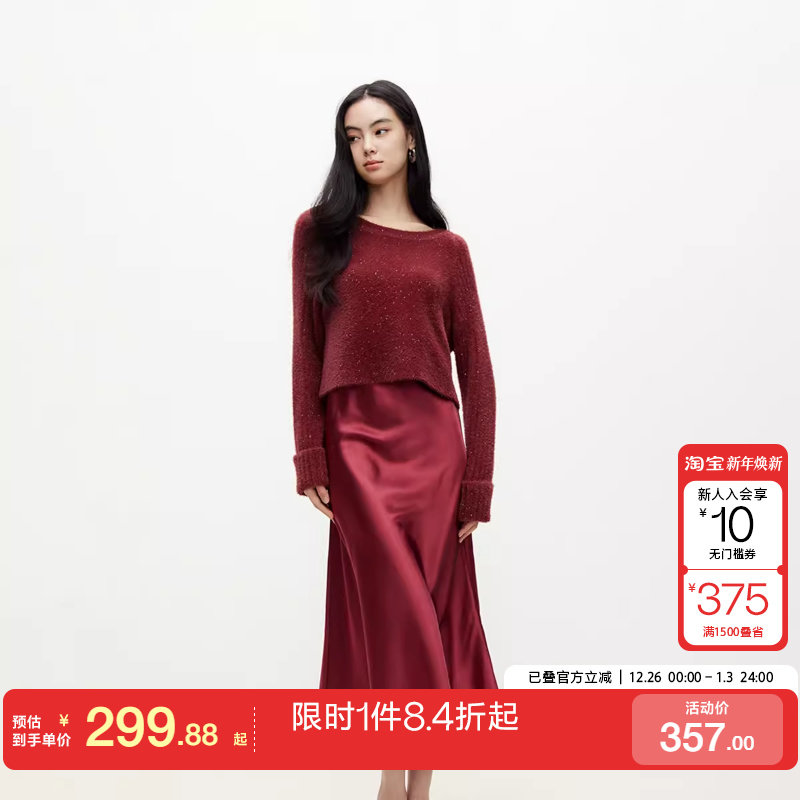ONLY2025秋季新款深V翻领针织衫垂坠丝滑A字中长裙套装连衣裙女