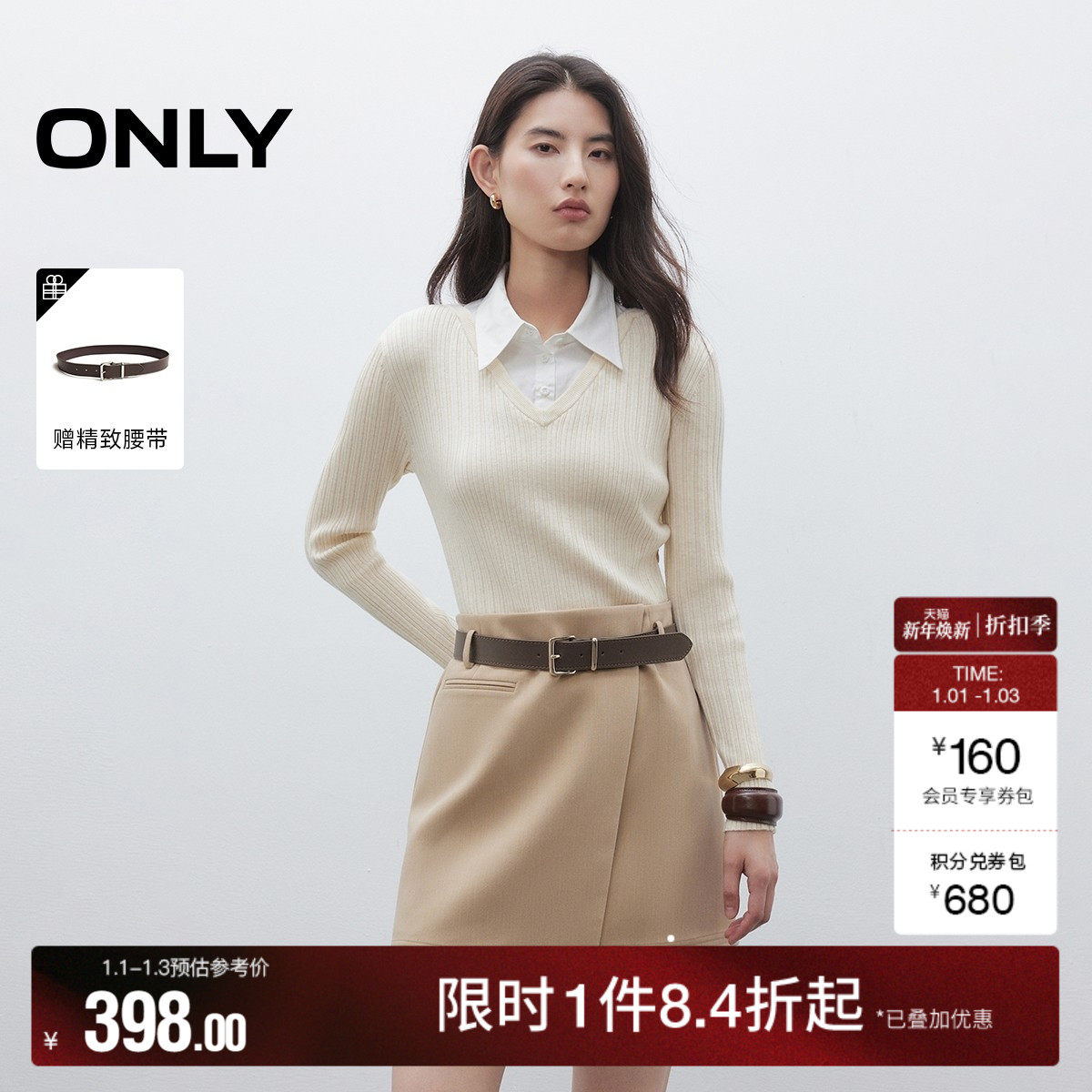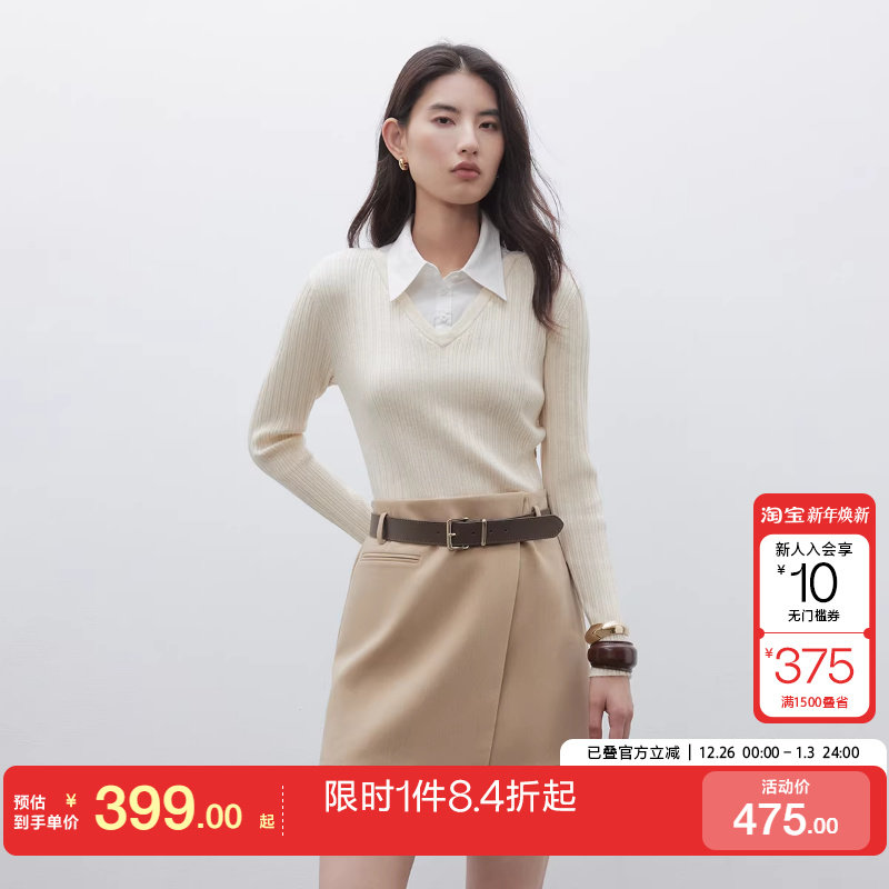 ONLY2026春季新款通勤假两件长袖翻领短裙可拆卸两穿领连衣裙女