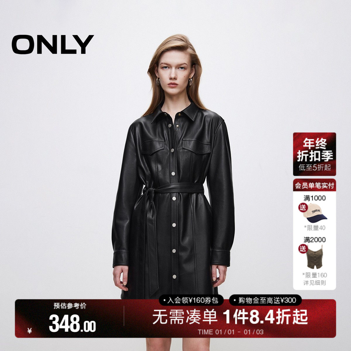 ONLY冬季收腰显瘦两件套PU不规则下摆连衣裙女|12437Y003