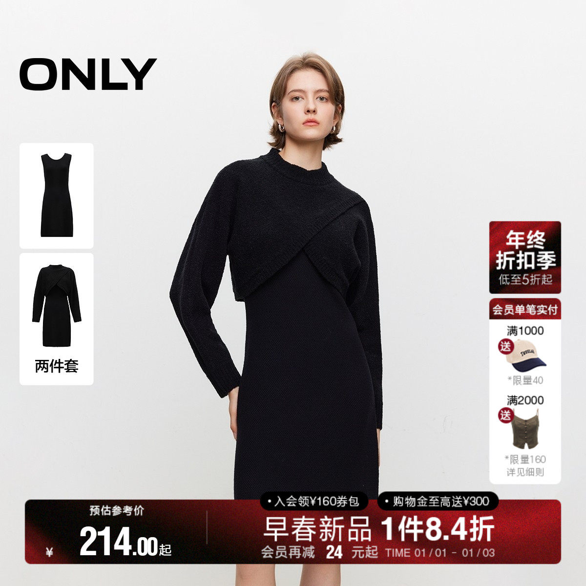 ONLY冬季通勤风小黑裙套装短裙针织连衣裙女|124446002