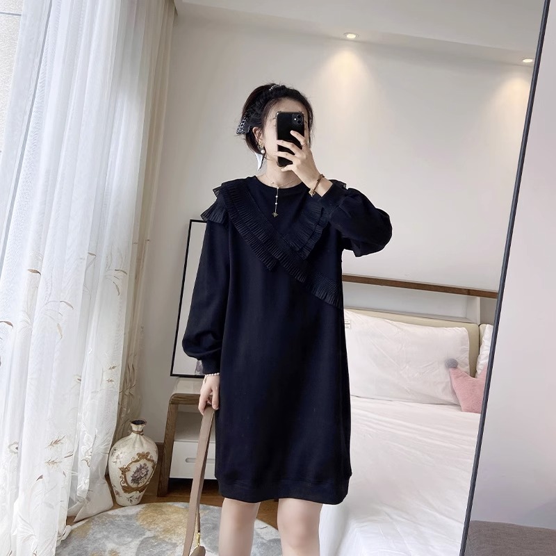 女2023年冬季新款黑色卫衣裙宽松大码显瘦胖mm连衣裙加绒加厚休闲