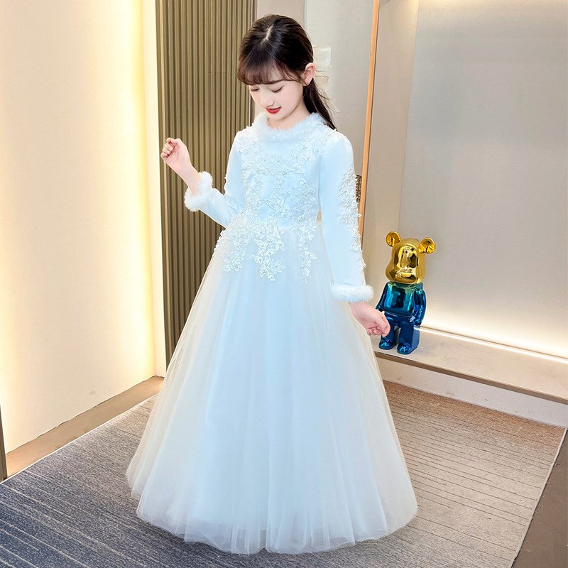 速发.加秋冬装连衣裙加绒202瓷新款洋气儿.童童厚蓬纱裙青花4公主