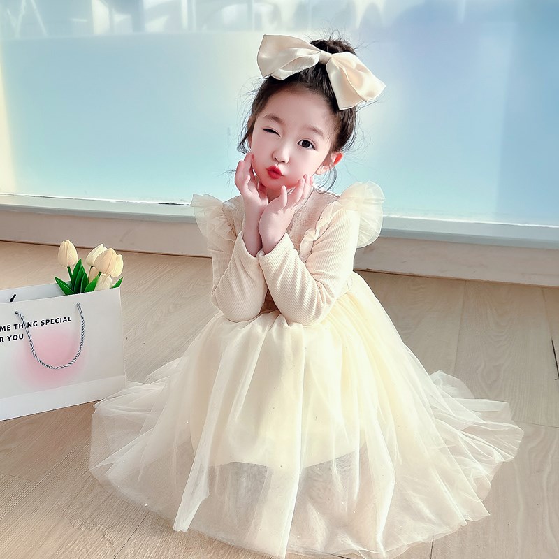 奶油baby女童连衣裙加绒2025秋冬新款洋气女宝宝亮片带头纱公主裙