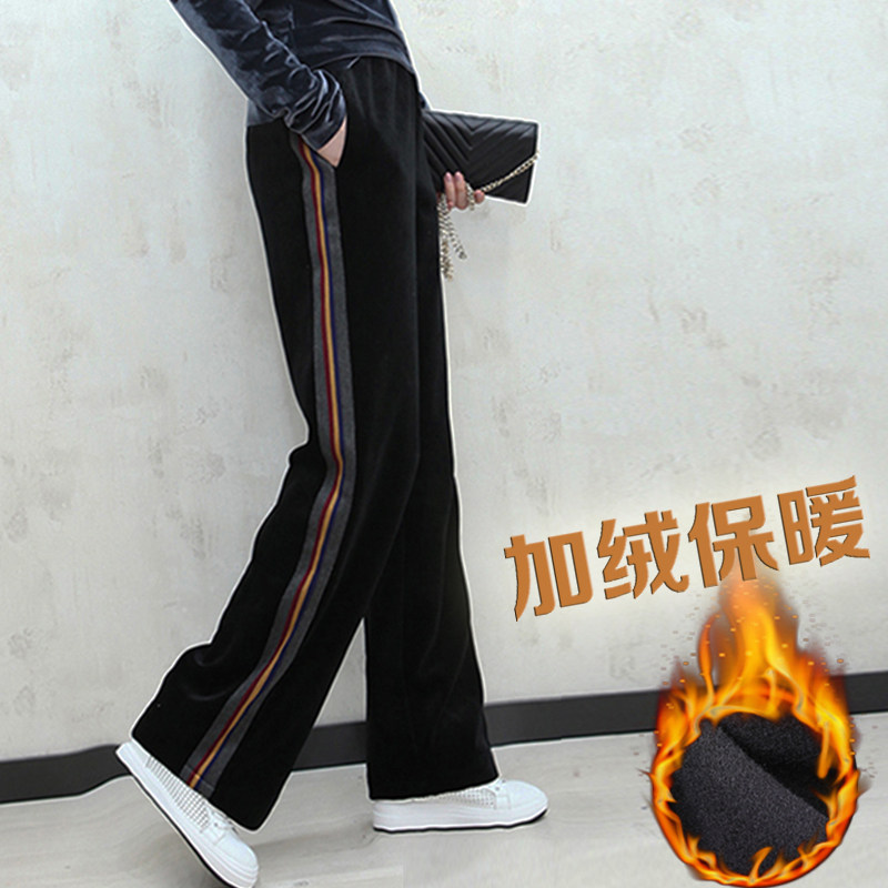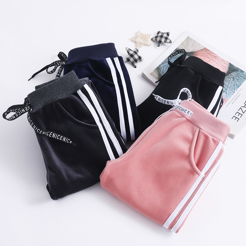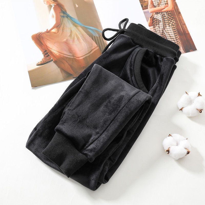 金丝绒卫裤女装大码宽松休闲运动裤女学生秋冬季加绒加厚保暖裤潮