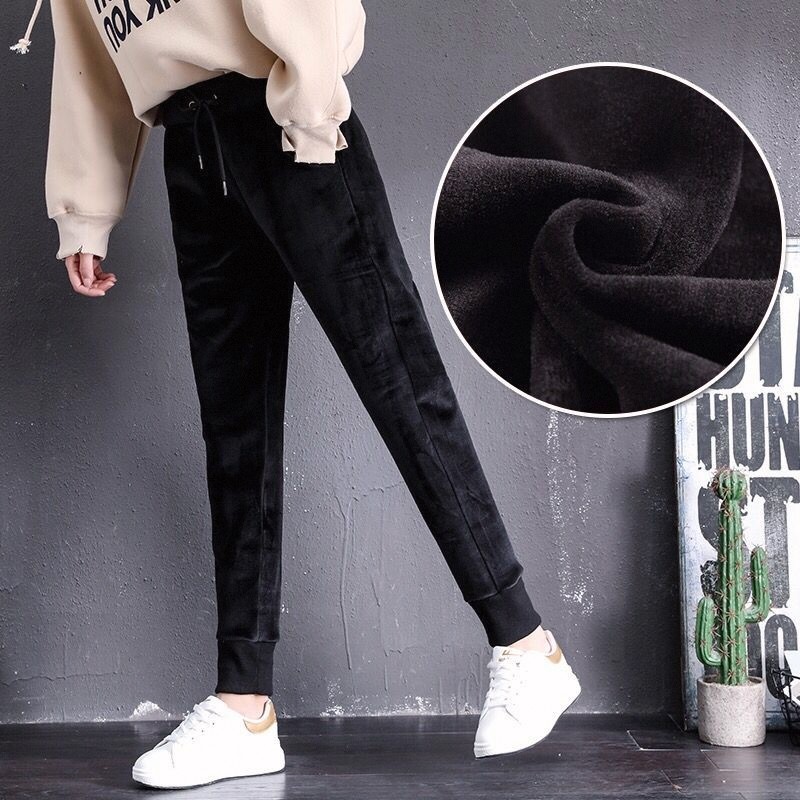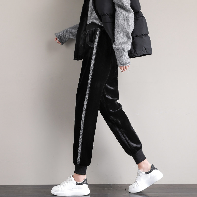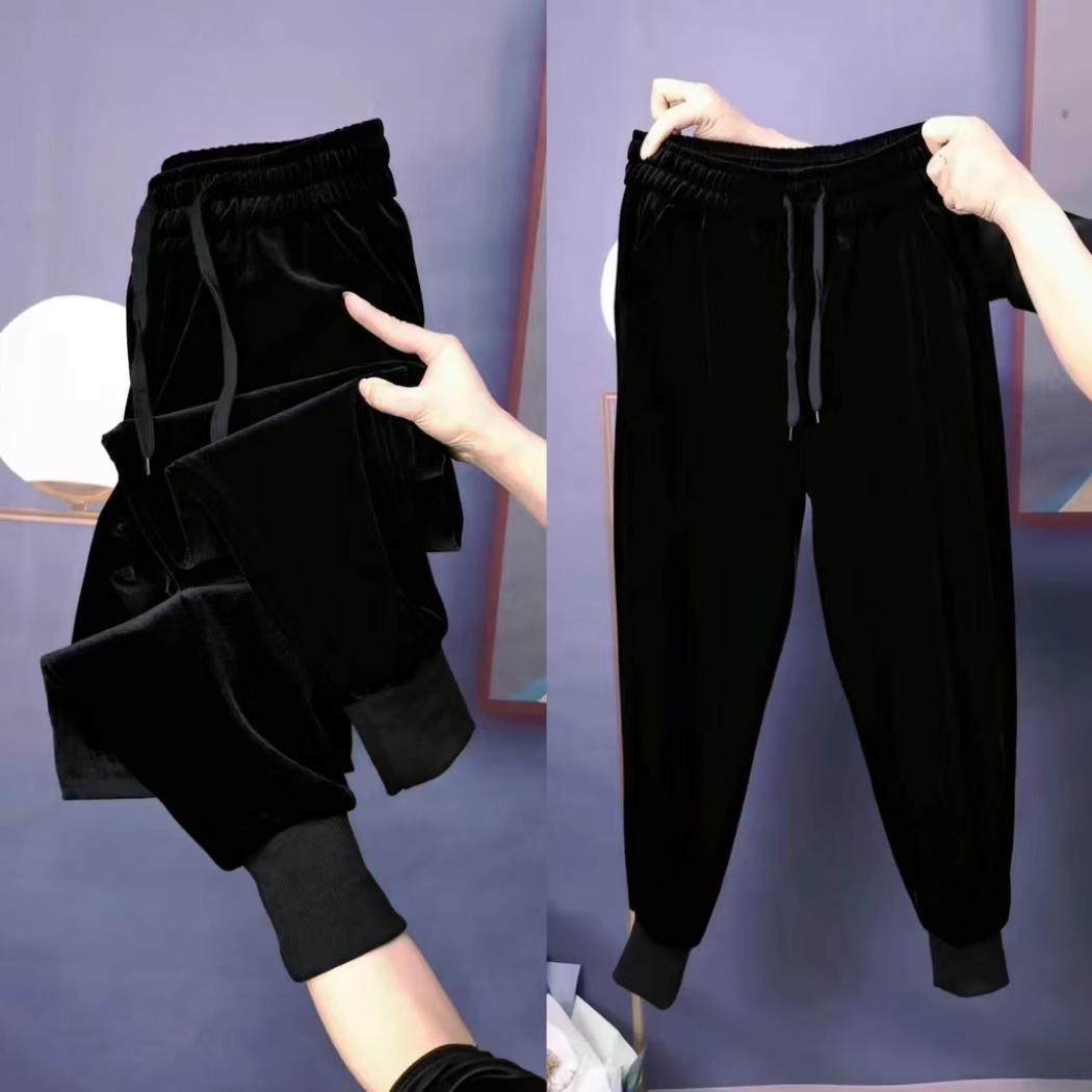 金丝绒运动裤女冬季新款加厚加绒哈伦裤宽松大码显瘦休闲小脚卫裤