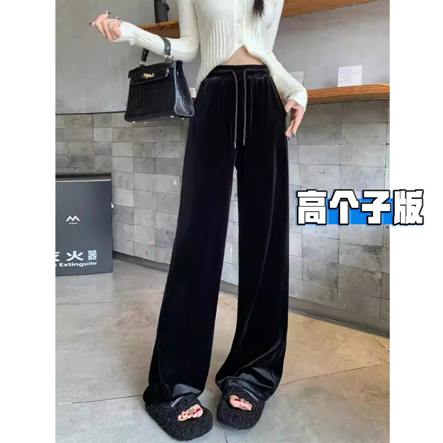 秋冬季加长金丝绒阔腿裤女士垂坠感超长宽松休闲运动裤高腰丝绒裤