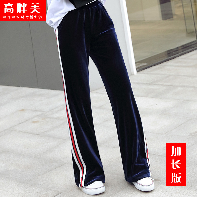 300斤大码金丝绒哈伦裤女冬季新款高个子加长裤子胖妹妹200斤卫裤