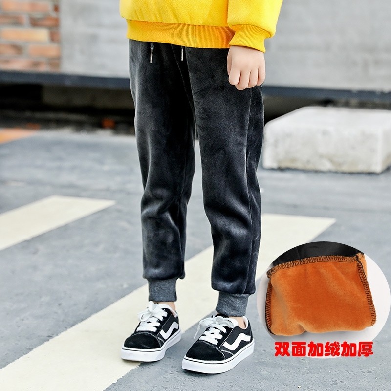 秋冬季儿童加绒裤子一体双面金丝绒男童外穿长裤子加厚女童运动裤