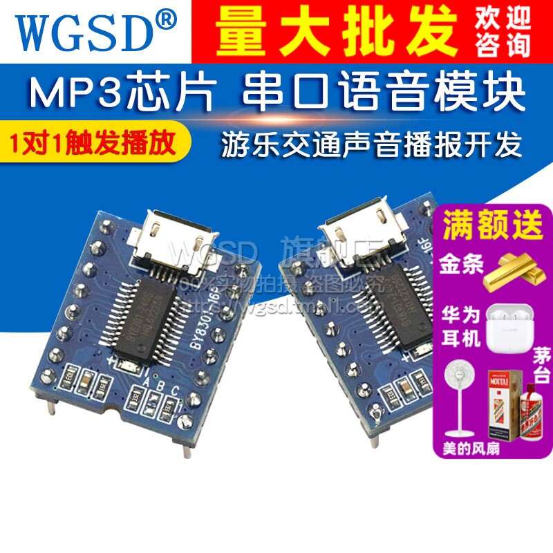 串口语音模块 MP3芯片播放板语音 BY8301 游乐交通声音播报开发