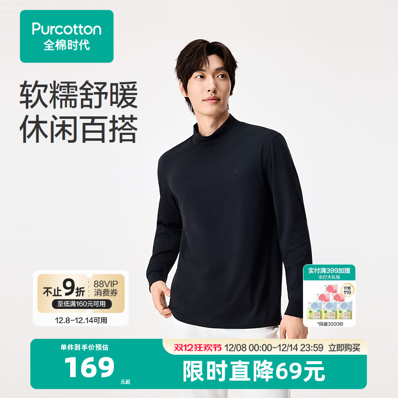 【慵懒打底衫】太平鸟男装 德绒长袖T恤冬季新款半高领纯色内搭男