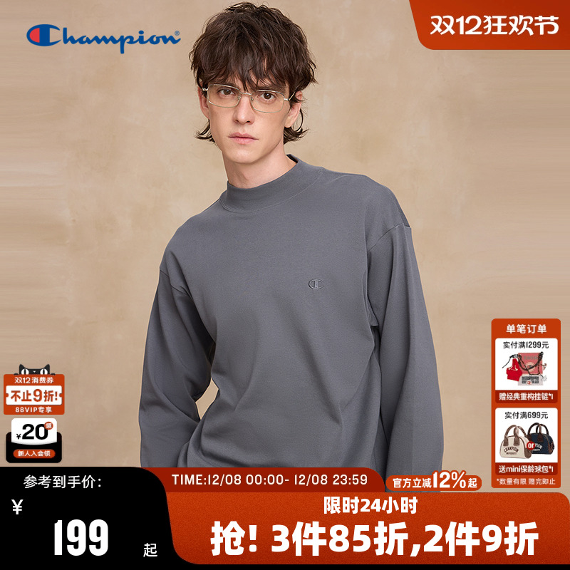 Champion冠军长袖T恤男2025秋季新款半高领纯棉舒适打底衫潮牌女