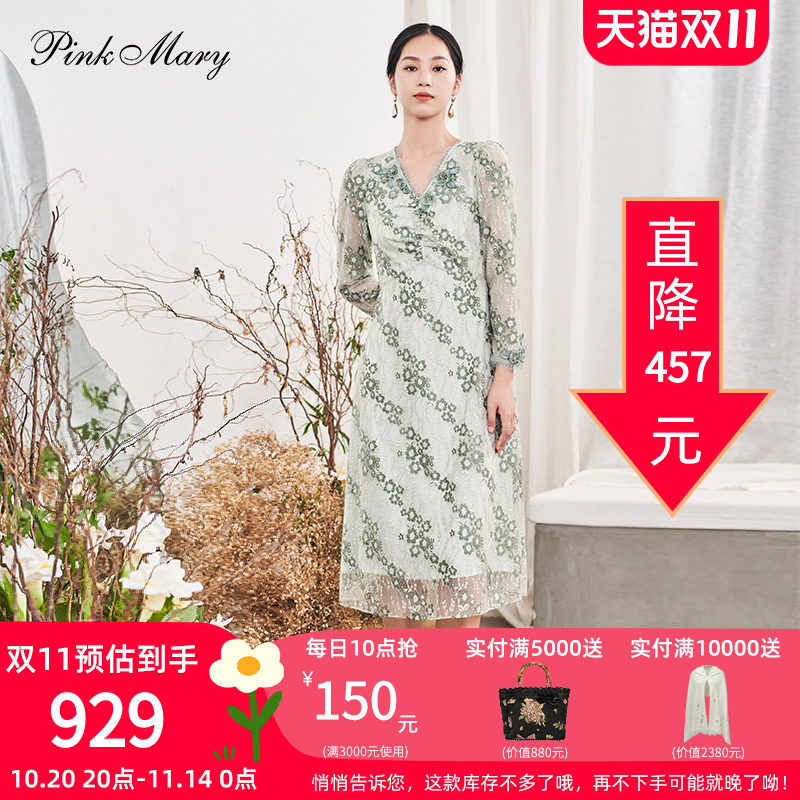 pink mary粉红玛丽蕾丝连衣裙春秋收腰显瘦女士套装PMALS5509