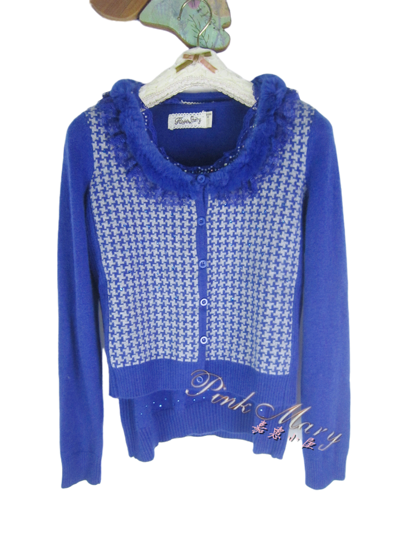 粉红玛丽/Rose Story/玫瑰传说 绣花獭兔毛山羊绒衫女两件套 标齐