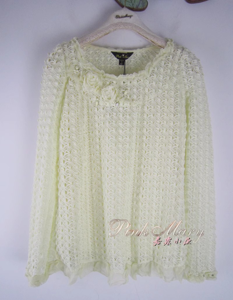 特价pink mary粉红玛琍/粉红玛丽春夏钉钻蕾丝长袖卫衣女上衣标齐