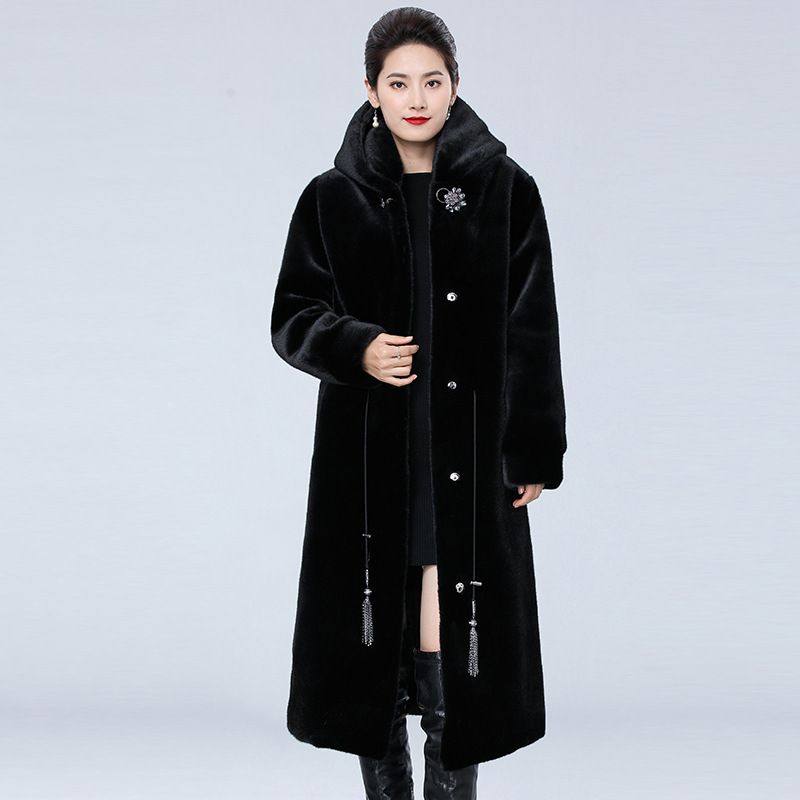 - 女貂皮大衣中长款