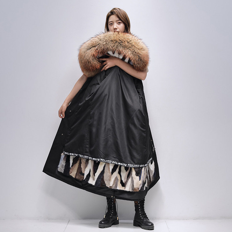 - 女皮毛一体大衣中长款