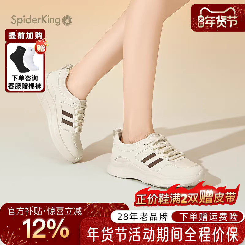 蜘蛛王女鞋官方正品2025秋冬新款时尚休闲爆款厚底女式圆头小白鞋