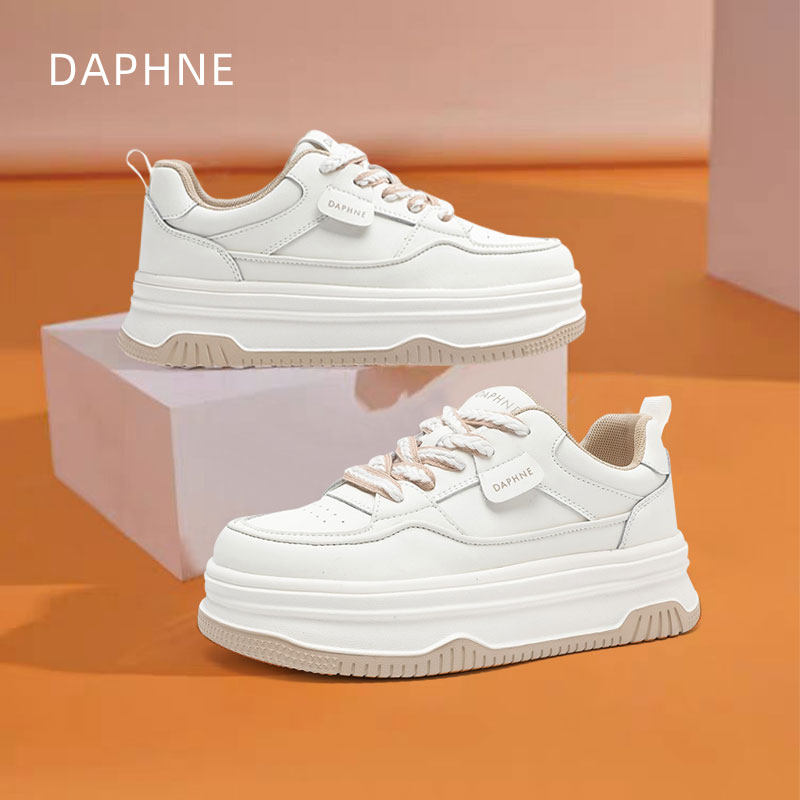 达芙妮圆头小白鞋女秋季新款厚底增高运动鞋软底皮面学生板鞋透气