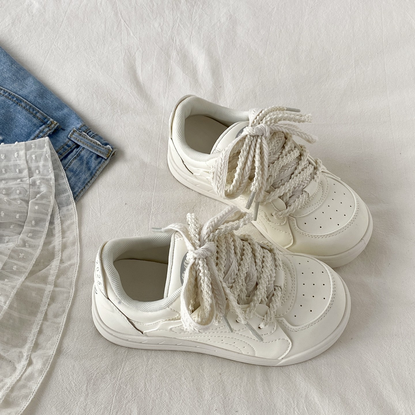 大东德训鞋女鞋2025秋季休闲爆款百搭平底系带运动圆头小白鞋7525