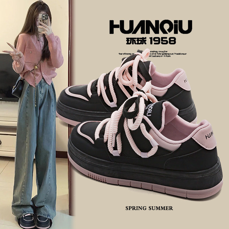 大东厚底板鞋女款2025新款爆款秋冬小个子增高鞋百搭圆头小白鞋女