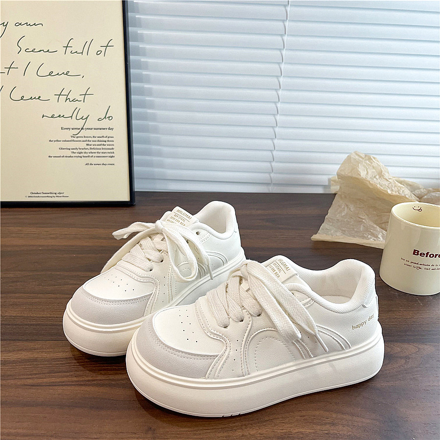 大东厚底板鞋女鞋2025春新款时尚休闲松弛平底中跟圆头小白鞋0209