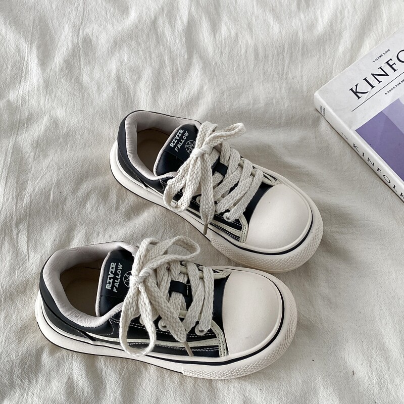 大东板鞋24秋季新款时尚休闲简约平底系带中跟圆头小白鞋24Q7541