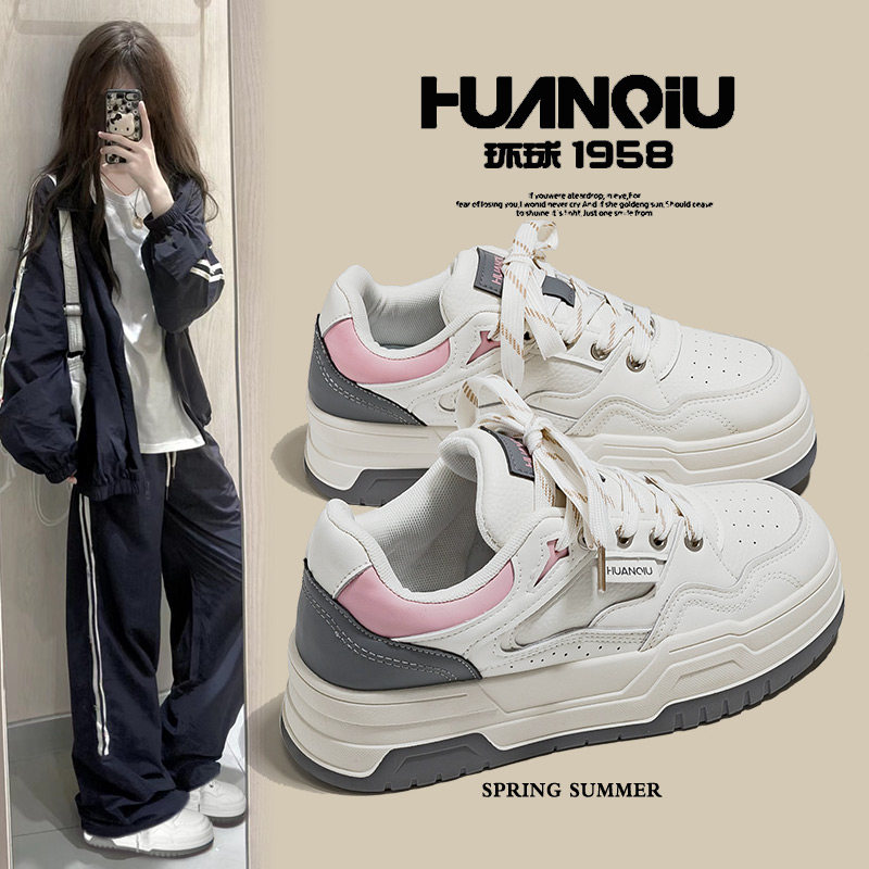 环球超火奶fufu圆头小白鞋女秋季2025新款百搭爆款厚底休闲板鞋子