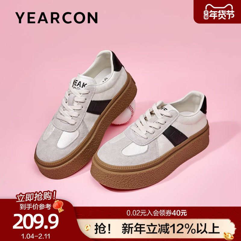 意尔康厚底拼色复古德训鞋女2025秋季新款圆头小白鞋百搭低帮板鞋