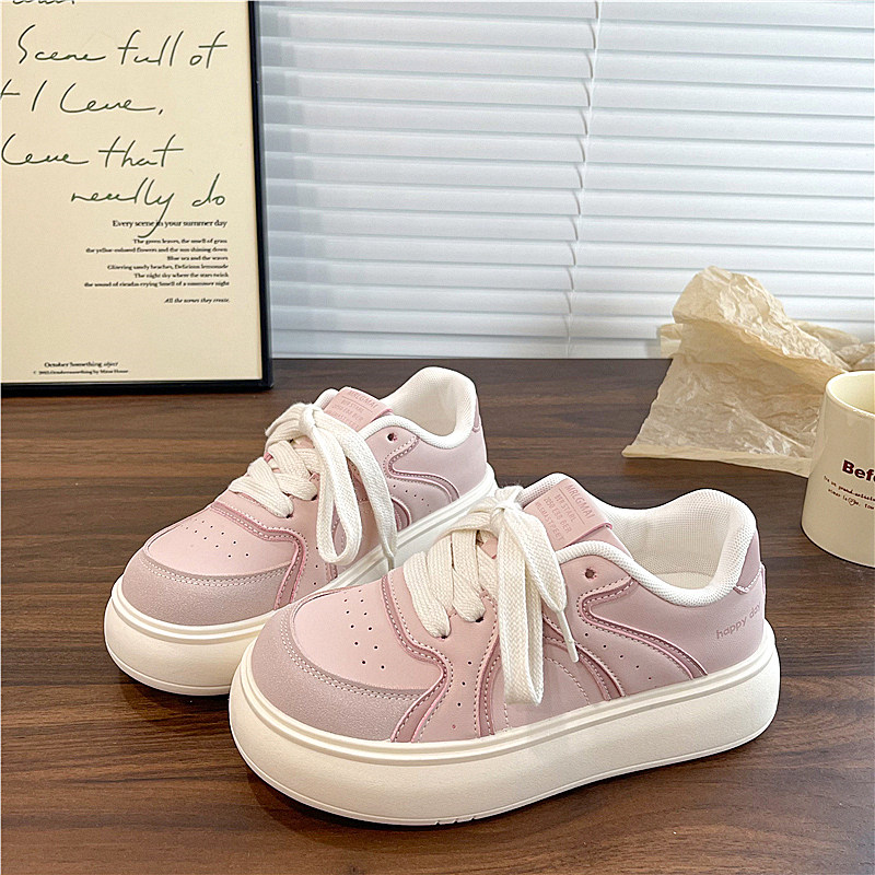 艾米与麦麦日系甜美厚底板鞋女低帮可爱学生百搭圆头小白鞋配裙子