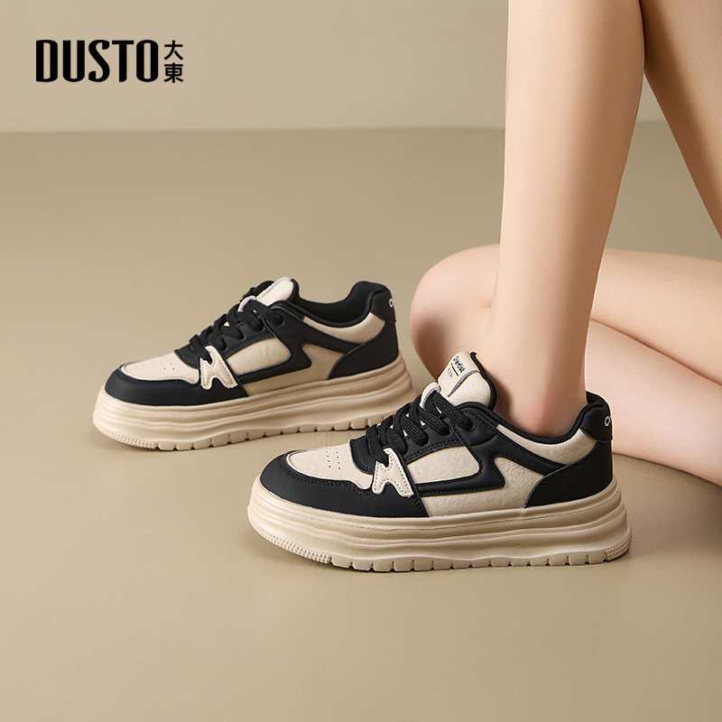 大东厚底板鞋24秋季新款时尚休闲平底系带中跟圆头小白鞋24Q7532