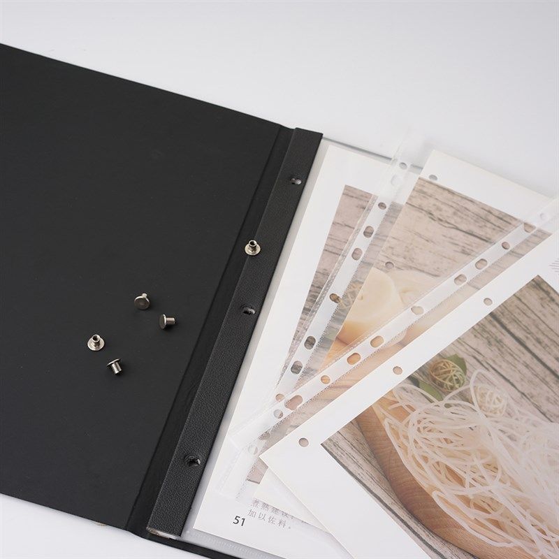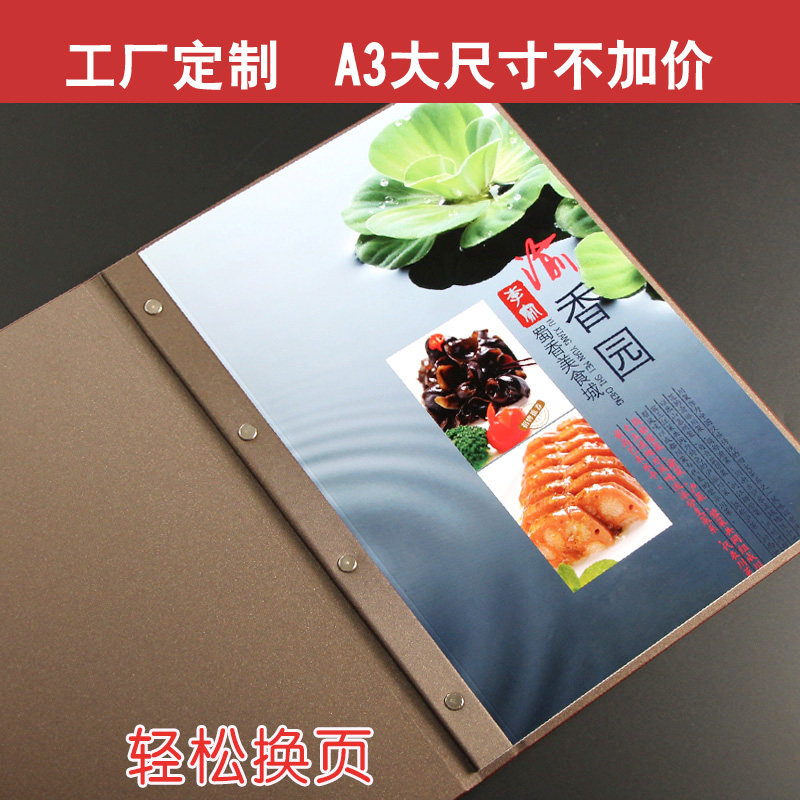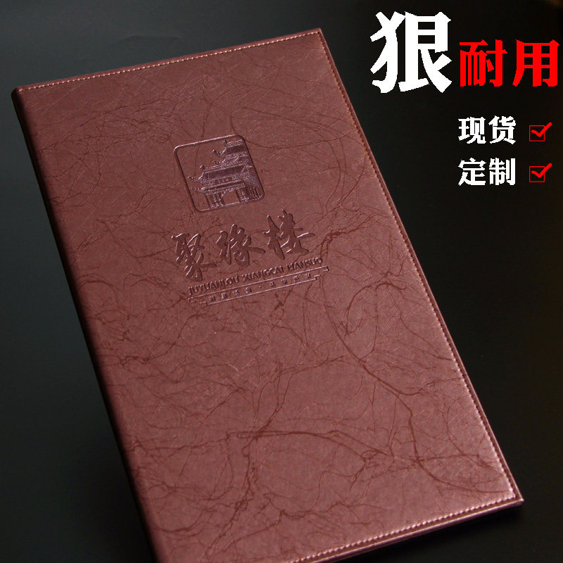 高档皮革菜谱本菜单夹点菜本饭店点餐本菜馆菜谱夹价格本透明菜谱本A4活页插页菜普本定制LOGO菜单制作黑色本