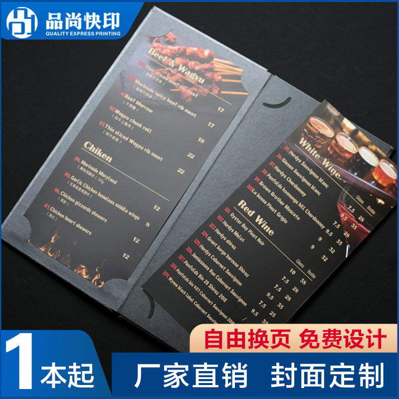 菜单制作定制设计酒吧酒水单皮面防水插页菜单印刷活页价目表餐牌