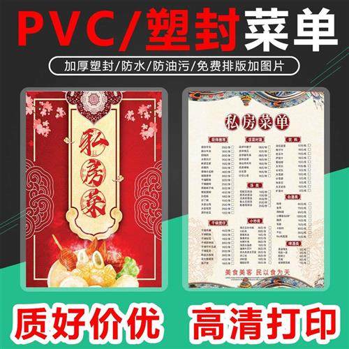 塑封菜单设计制作打印餐牌饭店价目表定制PVC价格表过塑菜牌菜谱