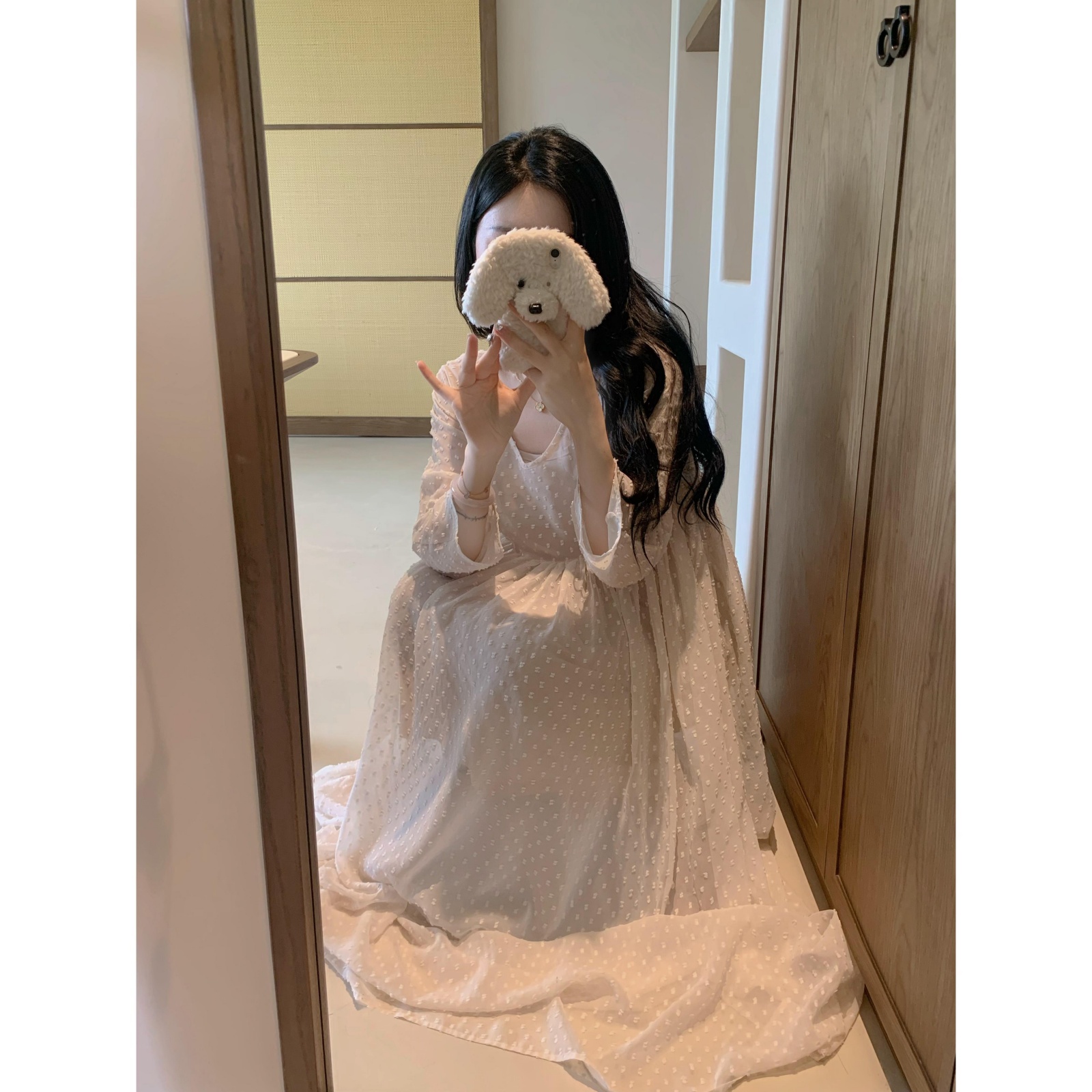 城南边儿9.13棉花糖系列~宽松大摆连衣裙植绒点点雪纺长裙两件套