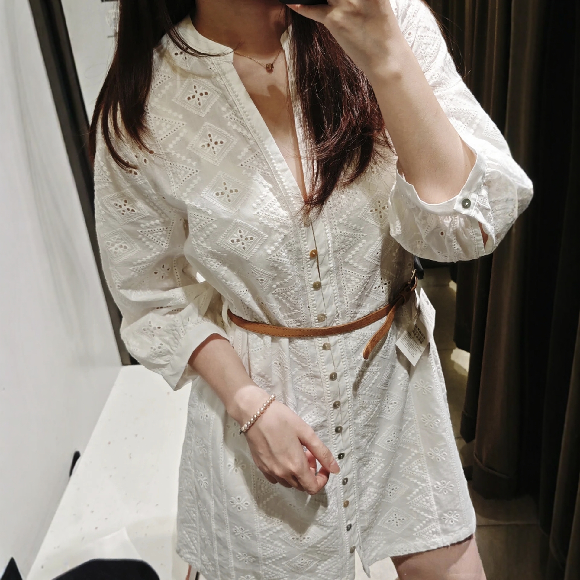 2025女装夏款度假风配腰带镂空重工刺绣深V迷你连衣裙女4745023