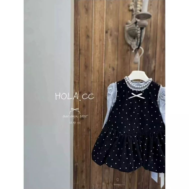 女童时尚套装秋季2025新款韩版超好看秋款宝宝时髦甜美点点连衣裙