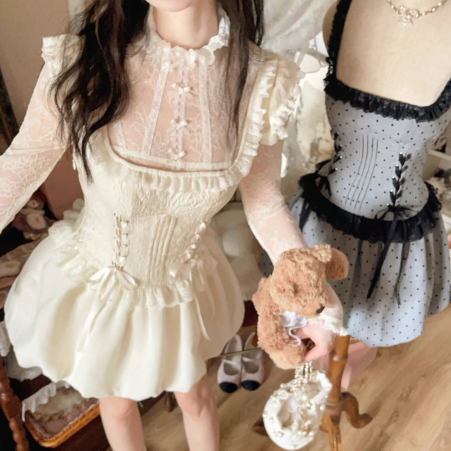 2025女装夏款黑点白色波点印花浪漫芭蕾下摆吊带连衣裙 0085356