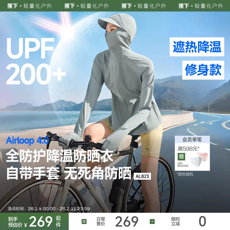 蕉下全防护指尖防晒衣女AL823冰丝户外骑行可调节松紧收腰防晒服