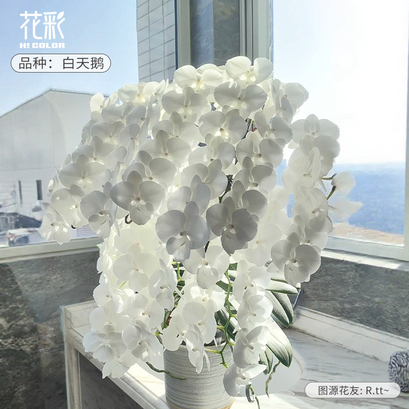 花彩白天鹅蝴蝶兰花盆栽带花苞阳台四季开办公室内桌面年宵花期长