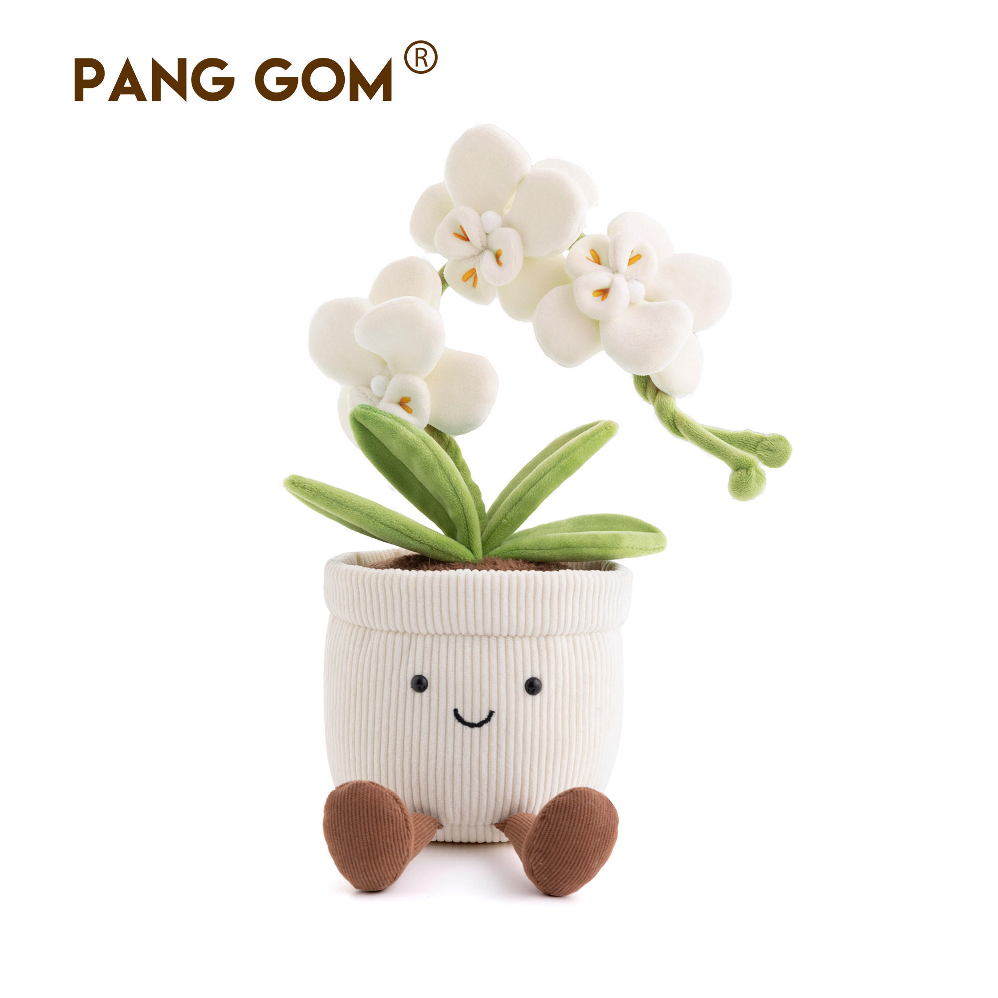 PANG GOM白色蝴蝶兰花盆栽毛绒玩具新年团圆送礼公仔植物花卉玩偶