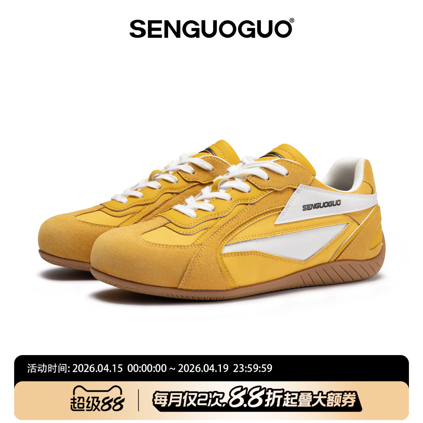 森果果 赛车鞋/黄色德训鞋女2026春季新款休闲板鞋增高情侣鞋子男