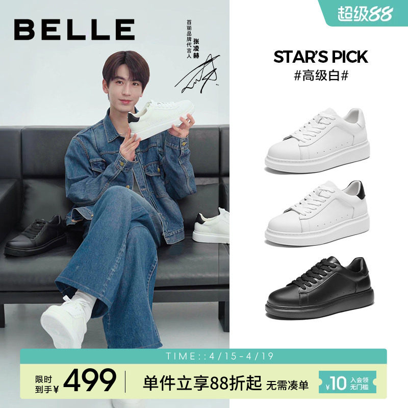 【增高6cm】张凌赫同款百丽休闲高级小白板鞋男夏季新款厚底鞋子