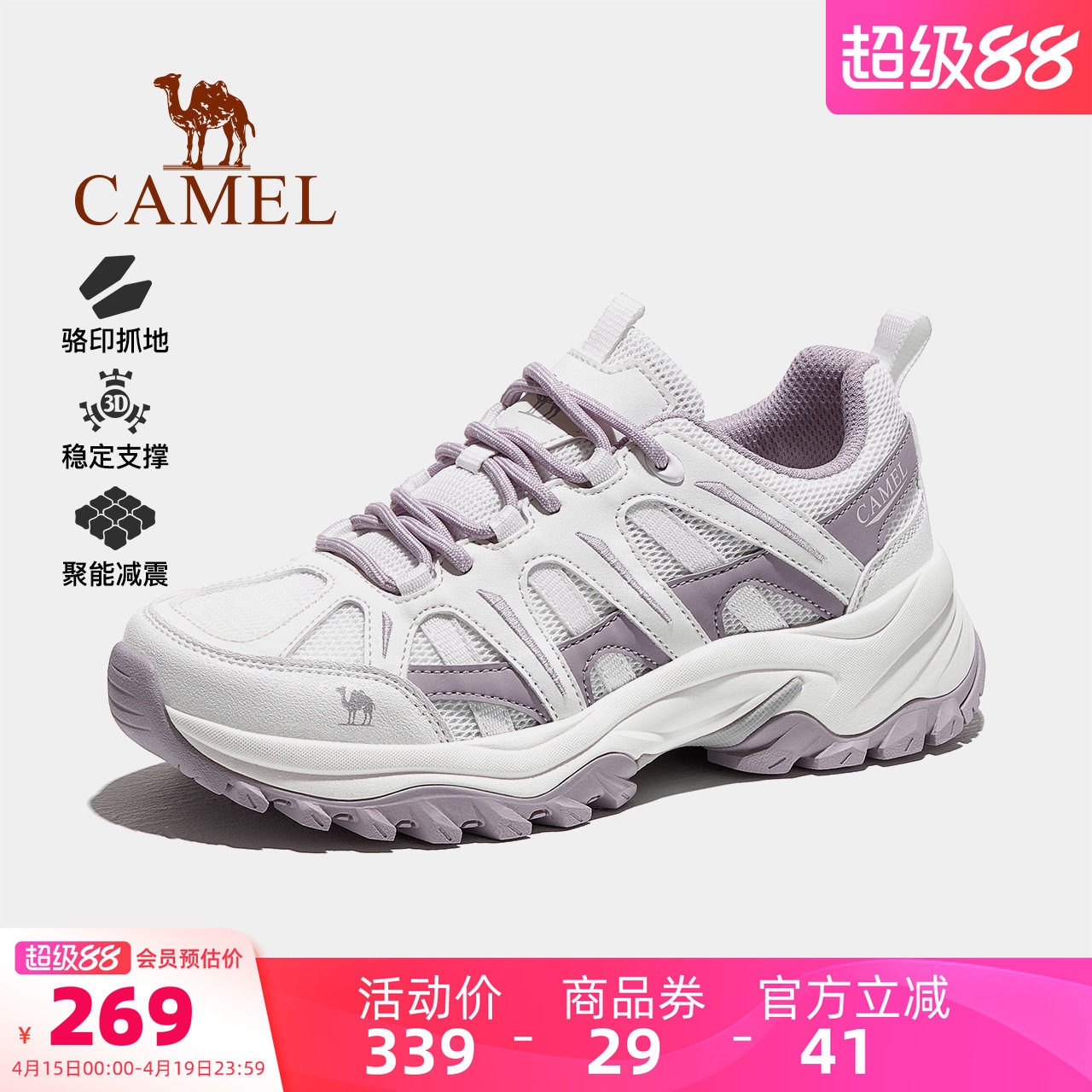 骆驼云逸2代登山鞋户外徒步鞋休闲鞋女防滑透气缓震增高轻便男鞋