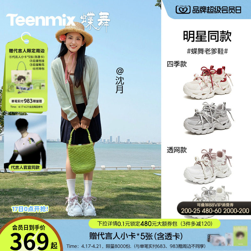 代言人同款天美意蝶舞老爹鞋厚底增高运动鞋男女款网面透气休闲鞋