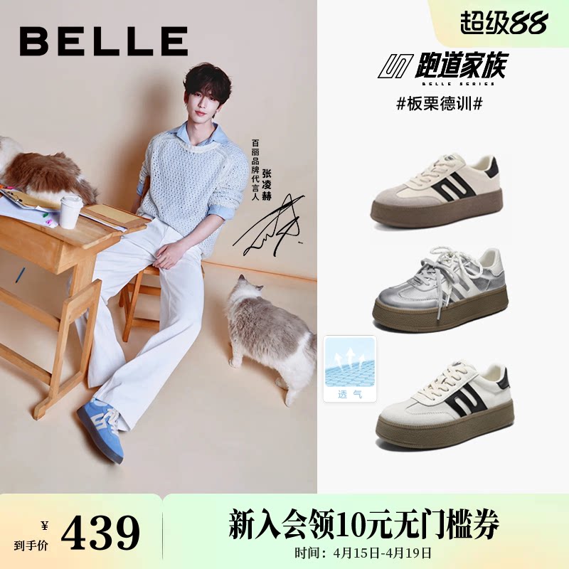 张凌赫同款百丽板栗厚底复古德训鞋增高鞋男女款网面休闲鞋A6N4预