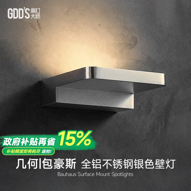 包豪斯壁灯不锈钢几何工业风中古银色氛围客厅墙灯卧室极简床头灯