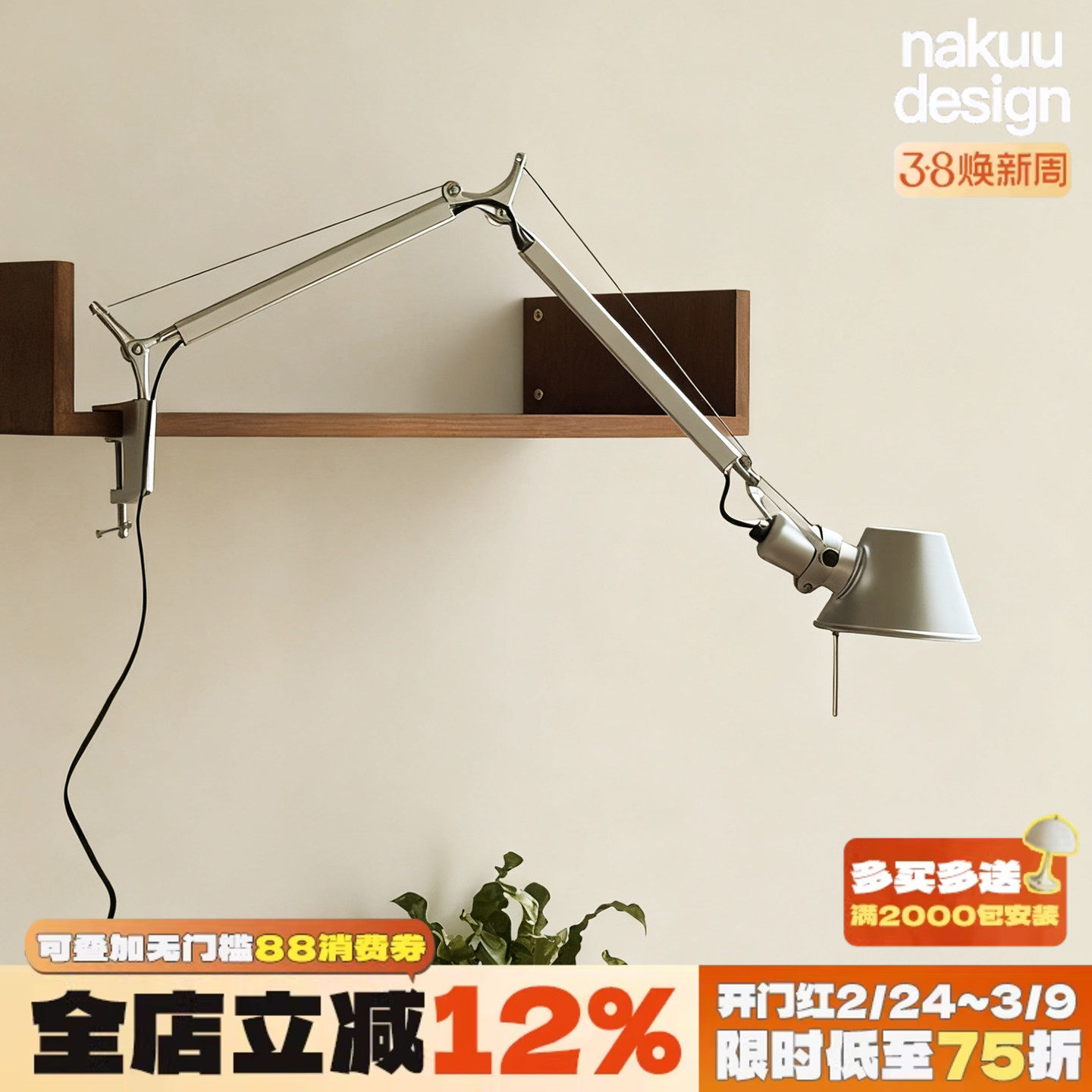 工业风Tolomeo摇臂夹子壁灯免打孔折叠书桌床头台灯设计师阅读角