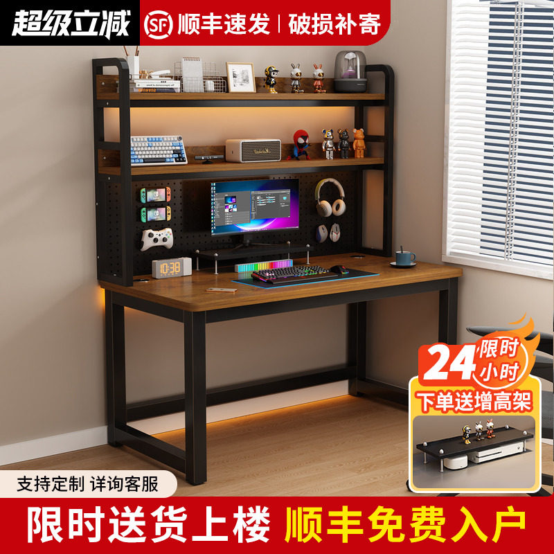 实木电脑桌书架一体现代简约卧室书桌子学生学习桌家用台式电竞桌