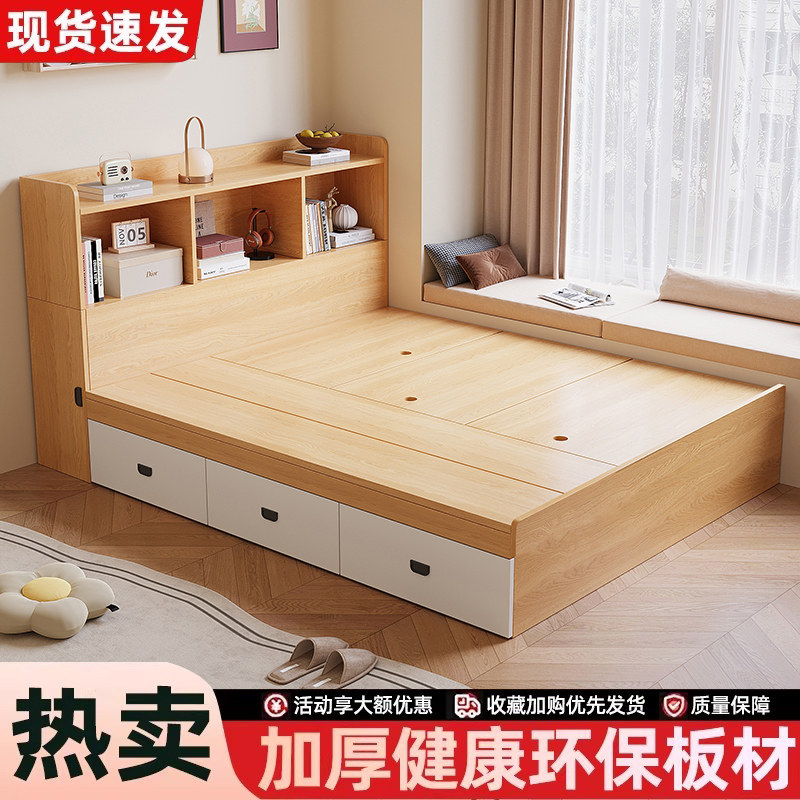 实木榻榻米床带储物主卧收纳床现代简约双人床小户型带书架箱体床