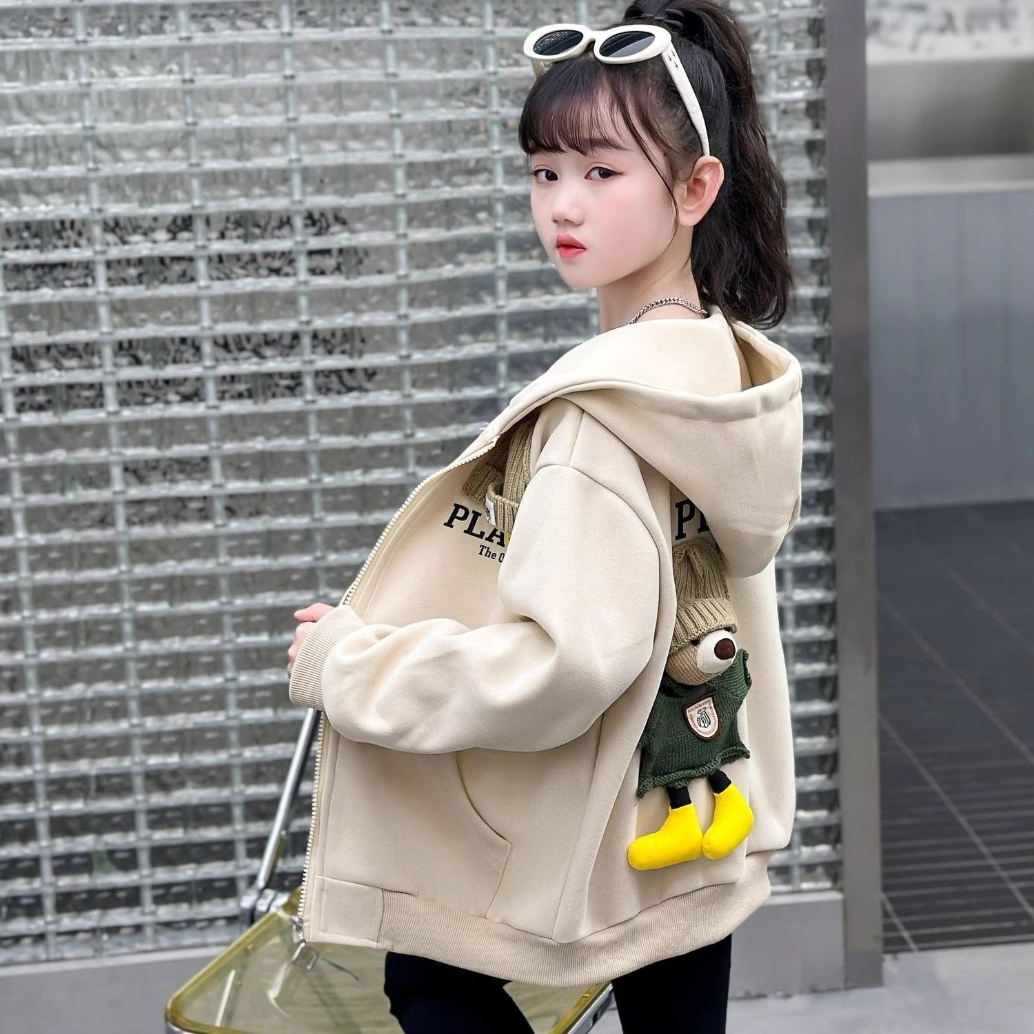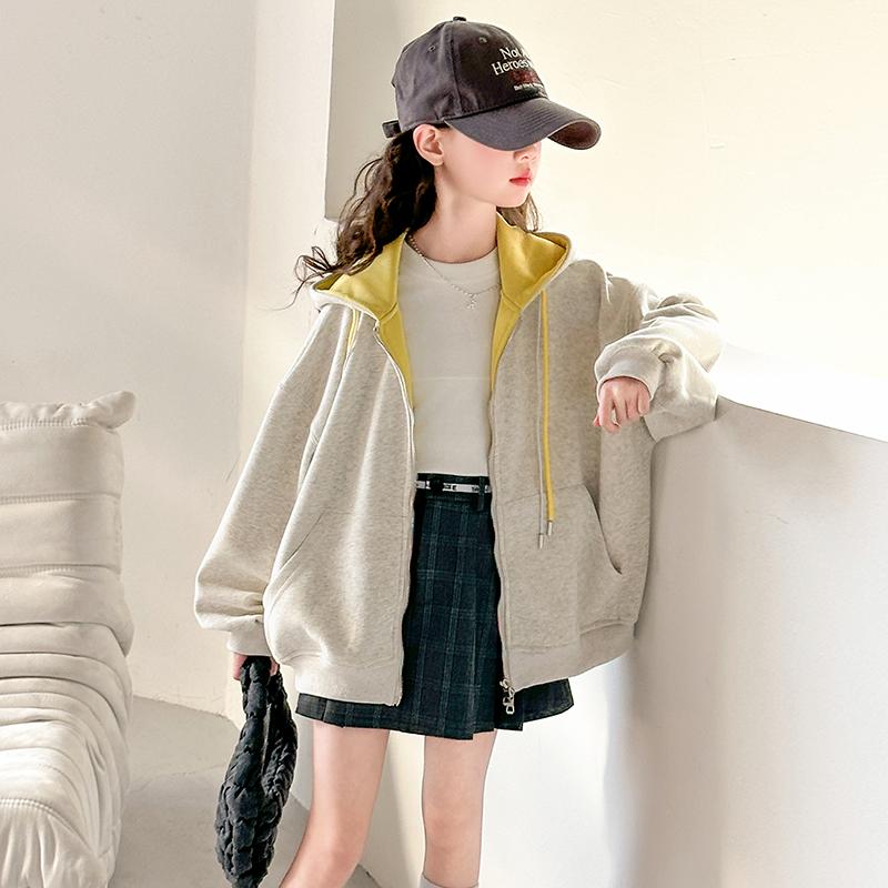 女童春款外套2025新款洋气女大儿童春秋韩系时髦连帽开衫休闲上衣